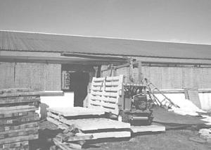 We can install concrete slats in our hog barns faster than the company can deliver them thanks to this motorized cart I had built two years ago. That's when we decided to replace 32,000 sq. ft. of metal flooring with concrete. We only work on the project during winter, installing up to 40 slats a day. The 3-wheeled machine is powered by a rear-mounted 5 hp Kawasaki engine. It has hydrostatic drive and a rear platform for an operator to stand on. It has two stabilizer arms on the side that extend when picking up concrete slats with the boom. We usually use 4 by 8-ft. slats weighing 1,200 lbs. apiece but it'll handle slats up to 10 ft. long. Height is just under the 86 in. of our door-ways. It steers with a rod attached to the front tire. Rear tires are foam-filled 10-in. tires. Custom-building the cart cost $4,000 from a nearby manufacturer of TMR mixers. (Amos L. Hoover, RR 1, Box 80, Blain, Pa. 17006; ph 717 536-3458).