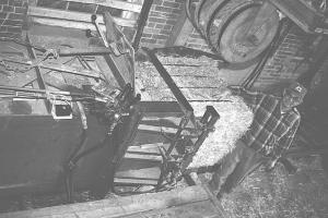 The men built the frame of the machine out of 6 by 6-in., 3/4-in. thick angle iron. The 20-ft. long, 32-in. sq. compression chamber was fashioned out of heavy steel plate.