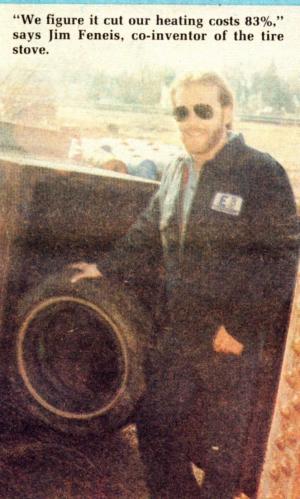 Jim and his father have spent about $5,000 in developing their tire stove over the past 2 years. As this Issue of FARM SHOW went to press, Jim had temporarily dismantled the stove to make some improvements but planned to have it back together and "fire up" again soon. He has no literature on the tire stove but would be willing to visit with interested FARM SHOW readers by appointment. For more information, contact FARM SHOW Followup, Jim Feneis, Esoc Companies, 621 Lincoln Avenue S.E. St Cloud, Minn. 56301 (ph 320 252-9711 or 252-6983).