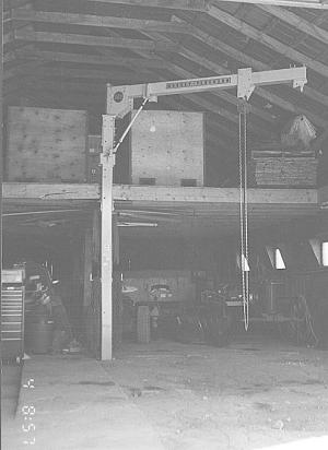 "We bolted an old stable cleaner chain/ hook on the end of the horizontal member as an extra feature," notes David. "The 2-ton chain hoist cost me a total of $149 (Canadian) to build. I first saw this principle used in a metal shop years ago."