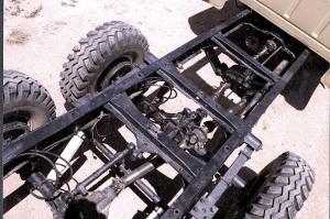 "Because of the walking beam axles it rides a lot smoother on rough terrain than a conventional pickup. However, it does ride rough when it's empty. I had to remove the 2-ton truck's original overload springs be-cause they made the pickup ride too rough. The suspension system is a miniature version of the Hendrickson walking beam system used on heavy duty trucks. It ke