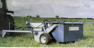 This mechanical weed puller is designed to pull tall weeds without using chemicals. Weeds are fed between a pair of pto-powered rollers which are said to pull 90 percent of weeds in one pass. An adjustable angle front feed belt guides the weeds into the rollers. The heads of tall weeds are drawn for-ward toward the guide belt by the action of a rotating feed reel. Weed gripping height is adjustable between 5 and 16 in. and working width of the machine is about 5 ft. Pulled weeds are collected in a hopper which can be tipped hydraulically at intervals. The hop-per can be removed to allow pulled weeds to fall to the ground.