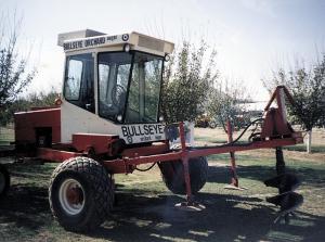 "Before building it, we used a conventional 3-pt. mounted auger on our tractor to dig holes to plant trees in. It was not only slow, but gave you a stiff neck by the end of the day from having to turn around and look behind you all the time," says Raymo Alberico, who built a self-propelled tree hole digger out of an old swather.
