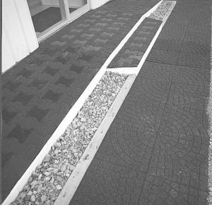 "Rubberbrick Pavers" are made from high-grade recycled rubber granules mixed with a polyurethane binder. They're stain, water and crack-resistant and are extremely durable, according to Tieule.