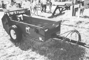 Tebben's all-steel Filly spreader holds 50 bu. and measures 12 ft. long, 5 ft. 3 in. wide, and 3 ft. 9 in. high. The beater and apron can be chain or hydraulic-driven. It can be pulled by a 15 hp or larger tractor.