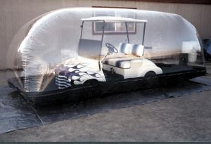 "It keeps out mildew, mold, rot and rust and the fan costs only about $1.50 per month to operate," says Bill Chapman, manufacturer. "The vehicle will dry out while it's inside the dome because a small amount of air is constantly leaking out through the zipper.