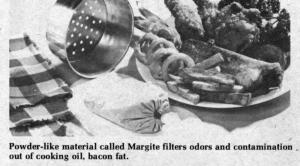"You can use the same oil over and over again for frying onions, fish, potatoes, shrimp, etc. with no transfer of flavors and odors," explains James Metzger, the inventor and manufacturer. "The filter fits containers of varying size. However, we recommend using a 2 lb. coffee can, or a 3 lb. shortening can. After frying, let the oil cool to less than 300 ? F. to prevent a boiling effect in the filter. Two cups will filter in about 5 minutes." Filtering is done with a built-in product called Margite.