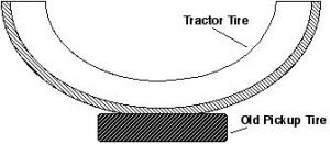 Leak-Checking Water Tank For Car And Pickup Tires TIRES/WHEELS Miscellaneous 24-6-41 Norman Epp, Hillsboro, Kan.: "I made a leak-checking water tank for car and pickup tires by cutting down a tractor tire and setting it on top of a pickup tire that's laying flat on the ground. I cut up the tire with a carbide blade in a circular saw to cut the tire, and a metal cutting blade to get through the bead.