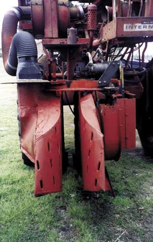 The only moving parts in Thompson and Bell's header are a centrifugal fan and a rotating drum that extracts cotton from the boll.