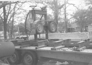 "It works great. I used most of Reeks's plans but made some modifications. I used 4 by 3-in. angle irons to make the main frame. My mill sets on the rear axle from a junked-out front wheel drive car. The steering wheel off a riding mower is used to raise or lower the platform. I used my mill last year