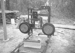 Jerry Baker, Boar, Ala.: "I've cut a lot of logs with it and it has done a great job," says Baker, who's building a new home with his bandsaw mill. He used 13-in. wheels and a 13 hp vertical shaft engine salvaged from a Cub Cadet garden tractor.