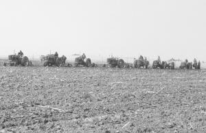 Farmalls - not just M's - all plowing at once.