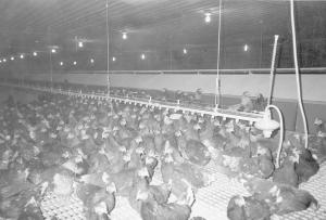 Chicks and layers enjoy a free run of their respective barns. The open floor is divided down the center by a row of nesting boxes about 3 ft. off the floor.