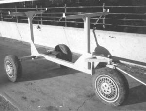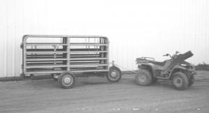 Corral Panel Cart LIVESTOCK Handling 27-4-16 "We made this 3-wheeled cart to carry 10 16-ft. corral panels. We made it from a new car axle and one front wheel. For the hitch, I used 2 1/2-in. pipe squeezed into an oval egg shape. I just drop it over a 2-in. ball on an ATV or pull it by hand. The single caster wheel up front lets you turn around in narrow alleys. I use the panels to move cattle in and out of lots or barns."