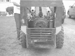 "I laid two pieces of 1 by 1-in. rebar stock parallel across the frame and then set the motor on it," he says. "Then I shimmed the motor up until the shafts matched and then bolted the engine down to the frame and double nutted it. It locked the rebar and the shims in place."
