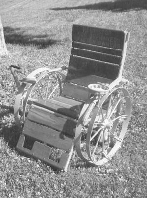 A pair of small disc harrow wheels on the back side of the backrest keep it stable in the reclining position. The wheels also allow the chair to be moved anywhere in the reclining position.