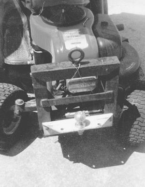 Bill Reeks, Cromwell, Ky.: "Lawn tractors usually get used only for mowing and maybe for towing a small cart or trailer. To make my new Sears Craftsman 17 1/2 hp riding mower more versatile, I removed the hood and installed a bumper equipped with a ball hitch. The bumper has an I-bolt on top of it that allows me to lift the front end of the tractor. As a result, I can sharpen blades without having to remove the tractor's 42-in. mower deck or reach underneath it. I place a safety stand under the deck so it can't fall.