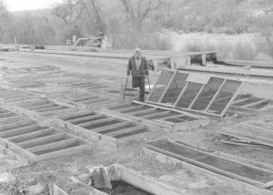 Pens consist of eighteen 4 by 6-ft. in-ground tanks and 12 that are 4 by 10-ft. in size. Three 20-ft. diameter tanks serve as breeding pens for raising tadpoles. Water depth varies with frog age and activity levels.