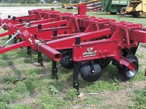 The implement, which they have trademarked as the "Row Wrangler"Ö, does several different operations at once. Up front, a six or eight-blade chopper sits over the ridge. As the chopper cuts crop residue at the ridge, 22-in. banded coulters slice through crop residue at the bottom of the furrow at a constant depth. Behind and to the side of the banded coulter are scalping discs that scalp the side of the ridge, eliminating weeds and rebuilding the ridge. Following those are ripper sweeps that help relieve soil compaction and further mixes crop residue and soil. At the back there's a mulcher which further mixes crop residue and firms the ridge for planting.