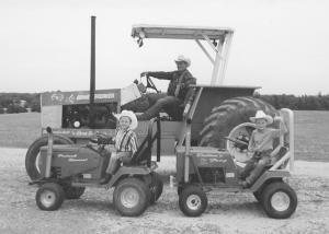 "Our grand kids love to drive them. They've ridden them so much around our house that part of the yard almost looks like a desert," says Snellings. "The tractors are powered by small Briggs and Stratton gas engines, but with the mufflers they sound pretty throaty. I used to farm with Deere and IH tractors, and my grandchildren wanted their tractors to look like mine. For safety I blocked the high gears on each tractor in order to keep them from going too fast. The kids haul their toys behind the tractors in a 4-wheeled wagon and a 2-wheeled trailer that I made. "