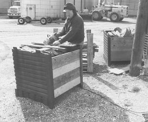 "The scrap lumber we use comes from wood pallets which we get free from local seed companies. We cut the wood into 30-in. lengths. Whenever we need wood for the stove we just use the forklift to bring in a hopper full. The hoppers can be stacked on top of each other to save space. It eliminates the mess of having boards laying around everywhere and keeps the shop neat."