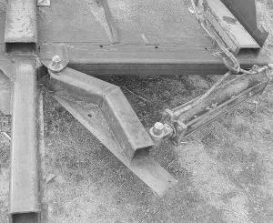 To build his shear, Mommens used: scraps of 4 by 4 by 1/4-in. square steel tubing, some old grader blade tips, a 4 by 24-in. hydraulic cylinder off an old loader, 2 by 6 by 1/4-in. wall rectangular tubing, 1/2-in and 3/4-in. plate, and some new hydraulic hoses.