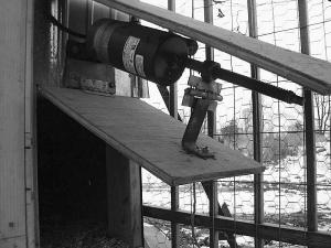 "The timer is just a simple calendar timer that I can reset as day length changes," says Bard. "The opener is an electric motor-driven ball screw. Its threaded shaft screws into a nut on the door."