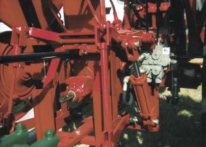 The 3-pt. hitch was not quite as simple. He made it from scratch with the exception of lift arms from an old Case tractor. The rockshaft was built from 3/8-in. flat iron and oil well rod. The arms pivot at the rear of a heavy-duty hitch framework that Olson made.
