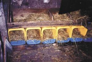 To make inexpensive egg-laying nests for my chickens, I use square plastic buckets that kitty litter comes in. I make a stand out of 2 by 4's to hold them and cut away most of the lid, leaving a small piece at the bottom of the opening to keep the eggs from rolling out. I also tip them toward the back. It was a good way to recycle used buckets. (Tom Kalista, 2107 48th Ave., Longview, Wash. 98632 ph 360 425-3953)