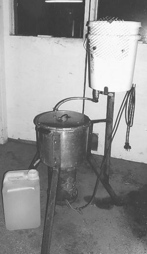 Pitts built the centrifuge to provide vegetable oil for his converted Datsun diesel pickup. He has driven about 15,000 miles on vegetable oil with no problems. Although numerous biodiesel kits are available, he designed and built his own with engine heat warming both the biofuel and the filter.