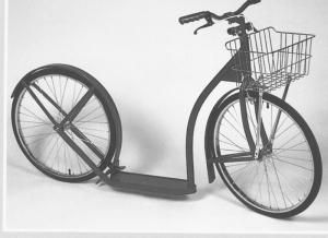 They're fitted with bicycle wheels because they roll easier than the usual 3 to 4-in. hard rubber wheels that most scooters have.
