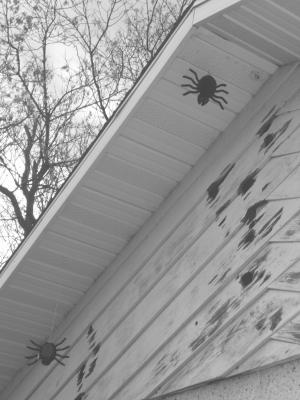 It's illegal to shoot woodpeckers, so I quickly searched the internet for possible solutions. A website for "The Birds-Away Attack Spider," got my attention. It's a large, hairy, black, battery-operated spider that looks like a huge tarantula. It's sound-activated so that when a woodpecker comes knocking, the spider starts moving.