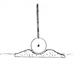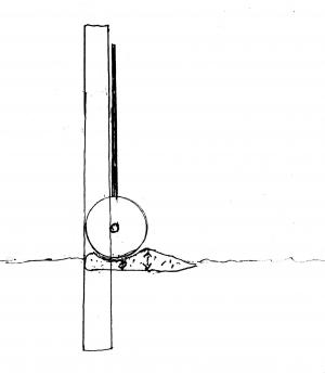 He buys 10-in. dia. wheels at Wal-Mart and mounts them on the bottom corner of each gate. Then he pours a little concrete pad next to the gate post with a "hump" on it. The wheel rides up over the hump and settles into a "cup" against a backstop. It holds the gate in place.