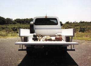 He also used 14 ga. steel to build the fenders and sheet metal to build a one-piece tailgate. The tailgate pivots on a 1-in. dia. steel rod that rides on sealed roller bearings.