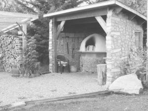 "I used White Poplar firewood that I cut into 9-in. long pieces, building the walls up by a couple of feet each day, giving them time to dry in-between. The wood must be really dry when you cement it in û mine was dried for a couple of years," Hans explains. "I have cement footings to keep the base of the oven and shack level, plus they protect the wood from ground moisture. We've got two windows in the shack for light, and they let us see out to the driveway."