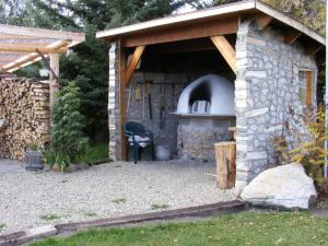 Pfaeffli uses the oven year-round to bake bread and, thanks in part to large trees nearby, there's enough shelter that no winterizing of the cook shack is necessary.