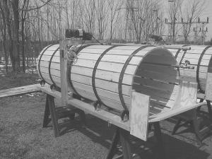 Vegetables are placed in the end of the barrel where the hose is connected. The other end is raised slightly higher. Adding more vegetables pushes the clean vegetables out the higher end, DeGraff says. A video on the Grindstone Farm website shows how the washer works.
