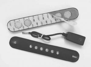 The "Riderlight" attaches with a strip of waterproof adhesive tape and is powered by a replacement lithium battery. It has six LED's and an emergency switch.