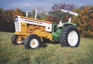Hybrid Tractor Painted Yellow & Green TRACTORS Miscellaneous 33-3-4 Irvin Seibel's G-955 tractor attracts both Minneapolis Moline and Oliver fans. That's because the tractor was built in Charles City, Iowa, by White after it took over the two tractor companies. The hybrid tractor has a 100 hp Minneapolis Moline front end and motor, and an 1855 Oliver rear end. It was sold under three different brand names: green and white as an Oliver, yellow and white as a Minneapolis Moline, and red and white as a Cockschutt.