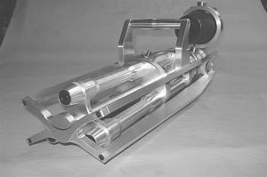 "The guns are a hybrid of gas and electric," explains Paul Piper, owner of Piper's Precision Products. "Battery packs rotate the barrels and open or close the air valve."