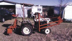 Here's a photo of a high-lift mini loader that I built for my garden tractor using plans from Larry Walton (Vol. 32, No. 3). I beefed up the frame with bigger tubing and made the bucket out of a used barbeque grill.