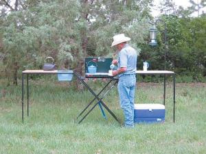 The Power Bench is adjustable in height with spring-loaded pins from 30 to 41-in. for your comfort. It's extremely durable and the only portable workbench that's strong enough to hold oil field drill stem. Ideal for wood or metal chop saws. It makes a great welding table and, by adding plywood, they make a great mechanic's bench or camp table. With your imagination the uses are unlimited.