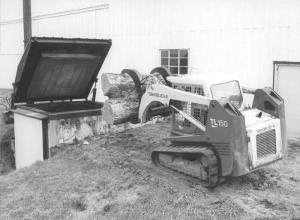 furnace into an embankment next to the shop. “We use a skid steer with a grapple to