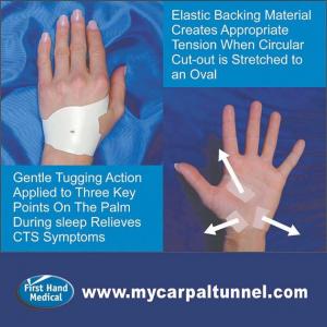 Stretching Device Worn At night Relieves Carpal Tunnel Syndrome FARM HOME Health 90-10-115 "I talk to CTS sufferers daily, who are having terrible hand pain, annoying numbness in their fingers and a weak grip. Often they are scheduled for surgery. They try the Carpal Solution as a last resort and within a few days or sometimes a few weeks, they feel relief and cancel the surgery," says Karen, Customer Service Manager at First Hand Medical.