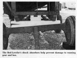 "This Bed Leveler makes older gravity flow boxes as good as new and helps preserve new boxes," says Tom Hart, president of Lee Welding, Lee, Ill. "The design permits wagons to float over rough fields to help elimate wagon breakage by using heavy duty shock absorbers to reduce sway and tippage."