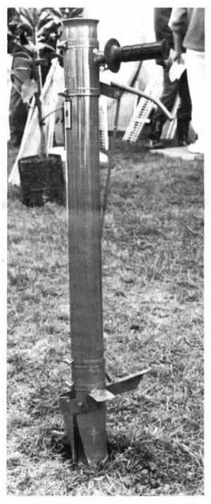 Designed and manufactured in Australia, the 21/2-in. dia. hand planter has a hinged jaw on bottom that's pointed when closed. You push it into the ground with a side-mounted foot pad and then drop a seedling into the top of the tube. Then you just pull on the handle that opens the jaw, dropping the seedling into the ground. As you pull the planter out, dirt settles around the plant.