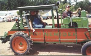 When Linford Larson found a New Idea manure spreader rotting in the woods he decided to restore it in an unusual way. After restoring the floor and sides with wood sawn from trees on his farm, he motorized the spreader. Now it hauls him and friends and family in parades and special events.