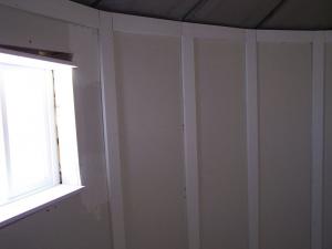 In April 2009, he started the project by mixing and floating several bags of leveling cement to fill cracks in the concrete floor. Next step was building the inner structure of the circular cabin.