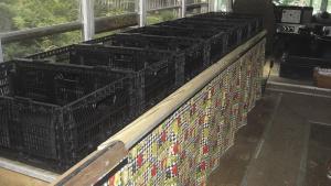 The bus was selected specifically for its air conditioning, but Dawson explains that other features also make it attractive as a vegetable stand. Everything remains shaded, plus the windows and back door can be opened at sale sites for increased ventilation.