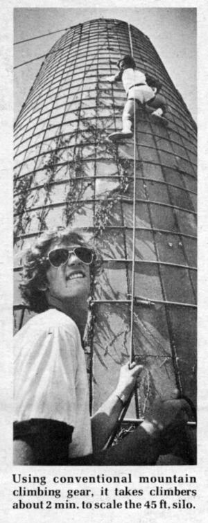 "It works real well," Scout Mark Bolar told FARM SHOW. "It's good practice, especially for rappeling (descending by means of a double rope) because it's a good, even surface and you can come down fast. It takes us about 2 min. to climb up." Bolar, had climbed large, steep mountains in Colorado and other places before suggesting the silo idea.